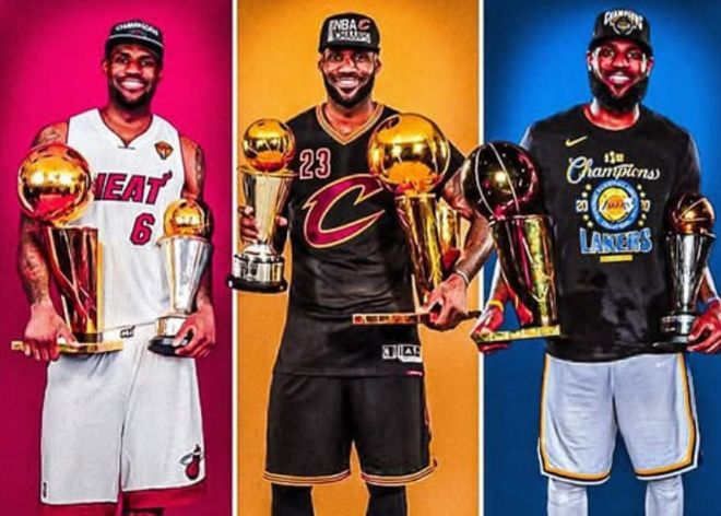 詹姆斯曾自稱“兩年奪冠型球員”。2010年,他因離開騎士隊、轉投熱火隊追逐總冠軍而飽受批評。他在熱火與韋德、波什聯手拿下兩座總冠軍,隨后重返騎士隊,并在2016年帶領球隊奪得隊史首座且唯一一座NBA總冠軍。